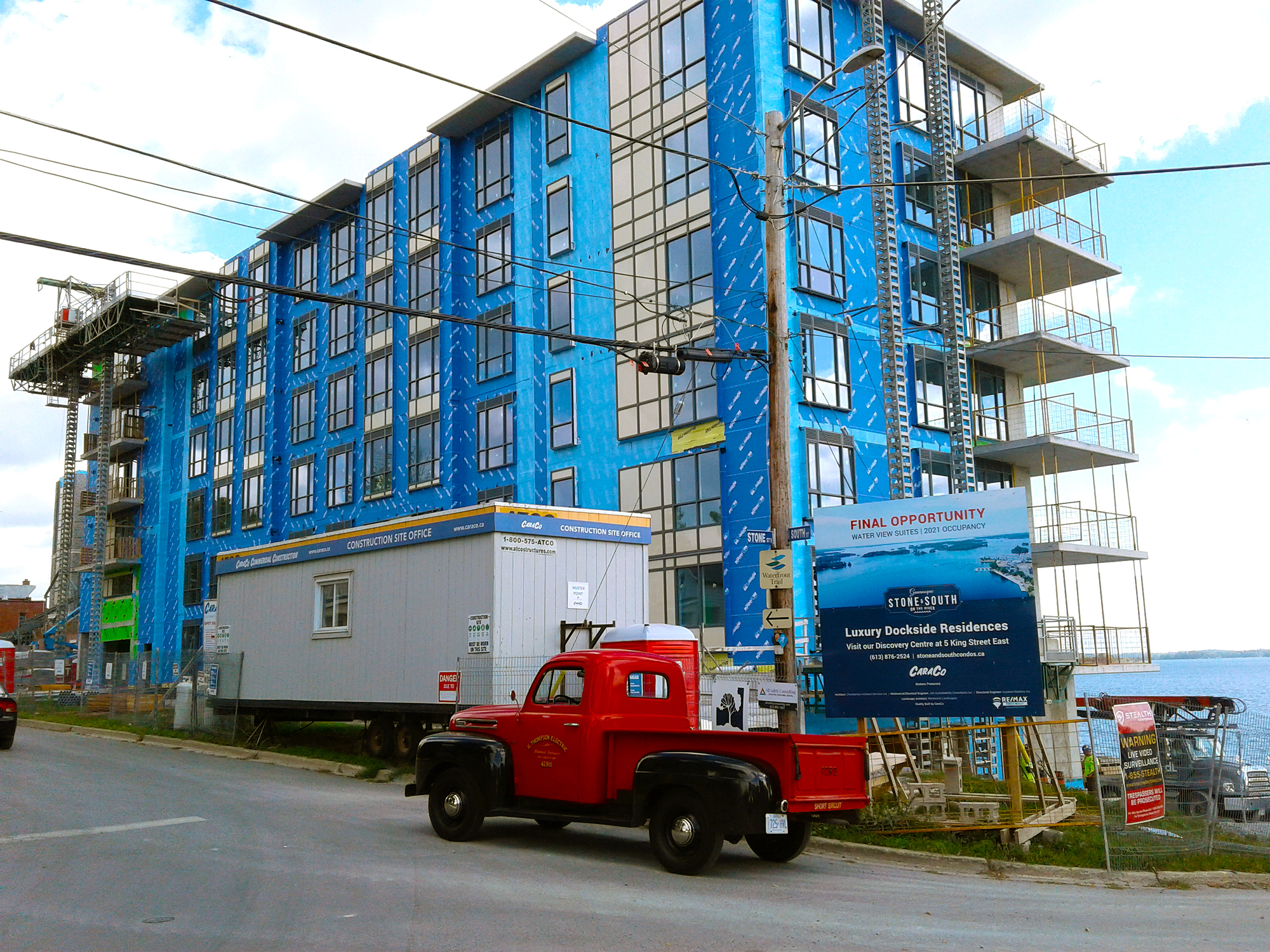 Completed in 2021, Thompson Electric was privileged to be the electrical contractor for Stone & South on the River, a beautifully designed two-phase waterfront condo development in Gananoque. Developed by CaraCo, the project features six-storey buildings with around 118 upscale units, all offering stunning views of the St. Lawrence River and the Thousand Islands.